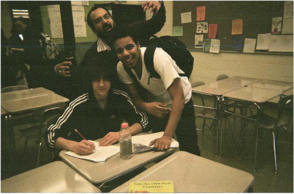 Dzhokhar with teacher Eric Traub and a friend in math class, ostensibly while hiding his secretly radical Muslim self.