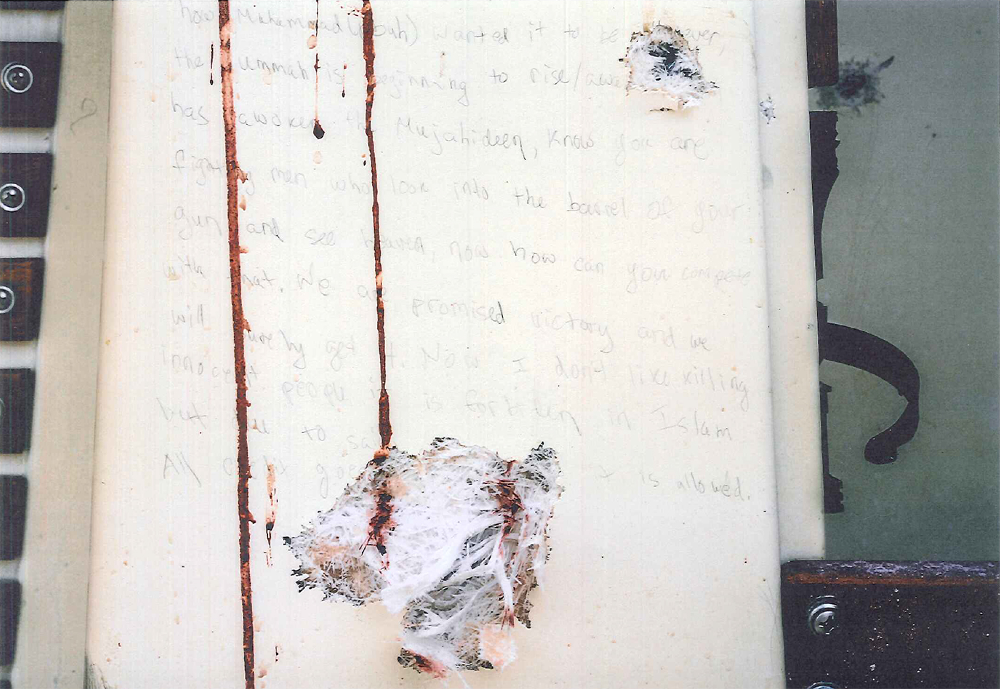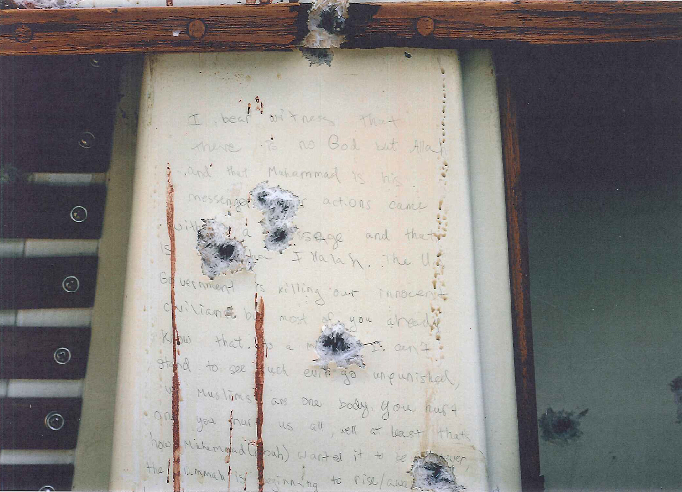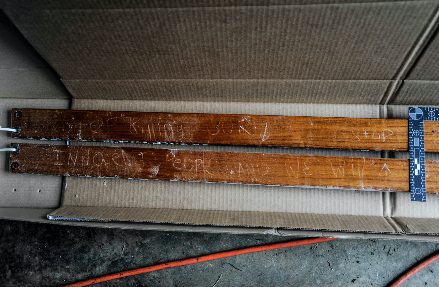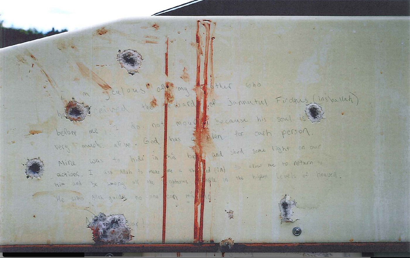 Exhibit photos of the note found in the boat: